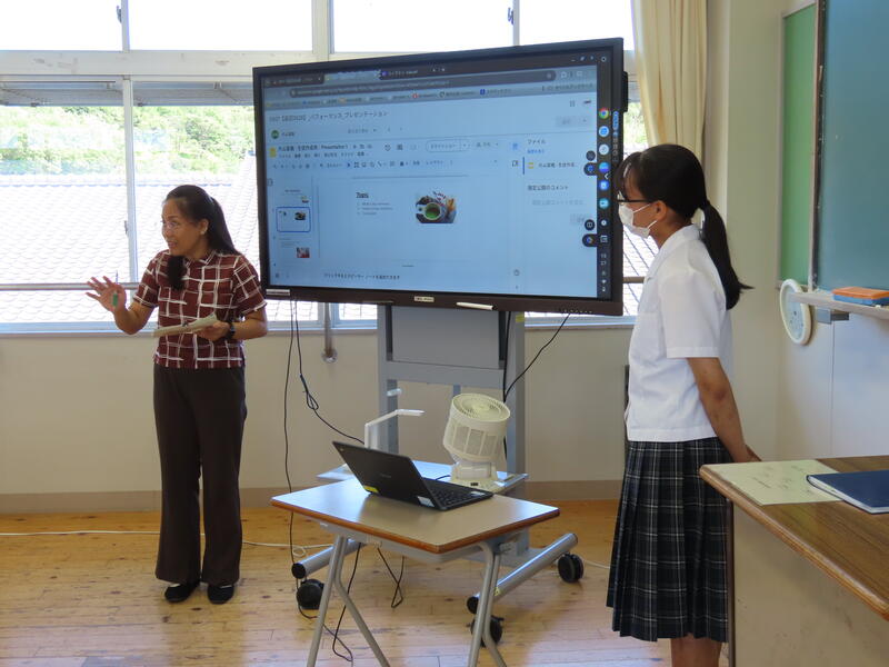6月18日(火)は、プレゼンテーションを行いました。先週、ALTのジュリー先生からネイティブチェックやアドバイスを受けた生徒たち。彼女たちなりに改善をしたうえで発表してくれました。