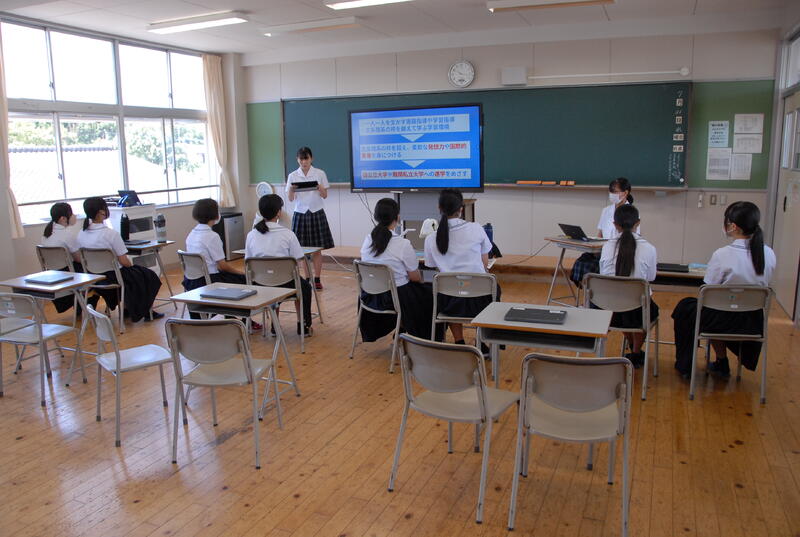 生徒たちは、先輩ならではの学習法や大学での様子など,時折メモを取りながら、真剣な様子で話を聞いていました。