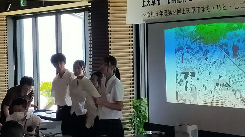 7月24日(水)、1年普通科グローカル文理コースの生徒たちが上天草市まち・ひと・しごと創生推進会議に係る戦略検討チーム構成員として委嘱され、第1回の会議に参加してきました。