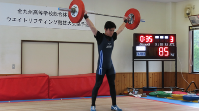 男子71kg級に出場した上岡さん(松島中学校出身)が、スナッチ85kg、クリーン&ジャーク88kg、トータル173kgで見事2位という結果を残しました。 さらに、九州大会の基準記録を突破したため、6月に大分県で開催される九州大会への出場権を獲得しました。