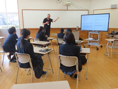 上天草市のグローバル人材育成事業の一環として「Tim先生の英会話」&「英語でのインスタグラム発信のコツ」講座が開催されました。考査最終日の放課後の実施でしたが、生徒が参加しました。