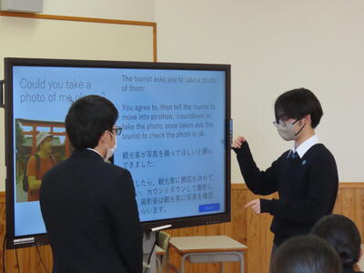生徒たちは撮影されているので、緊張した様子でしたが、調べて分かったことを英語で3~4分間にわたって発表してくれました。比較してみると「海外にはこういったものがあるんだ」という発見がありました。今回調べて発表したことを自分自身の教養として深めてほしいですね。