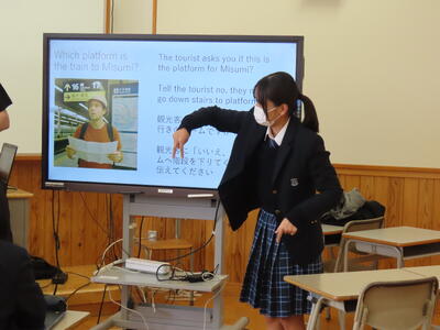 三角線への乗り換えは、下のフロアに降りて、8番線を利用する必要があります」などと、なかなか凝った内容もありましたが、生徒たちはTim先生に教わったジェスチャーなどを駆使してお題をクリアしていきました。