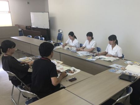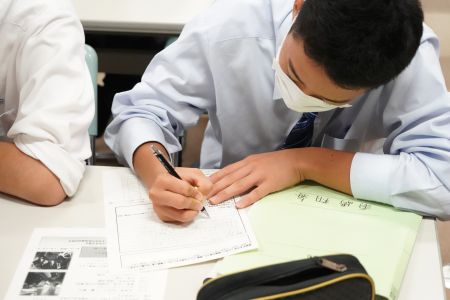講師の先生の話をしっかり聞いて、自分の意見や考えを話し、表現することがテーマになっています。