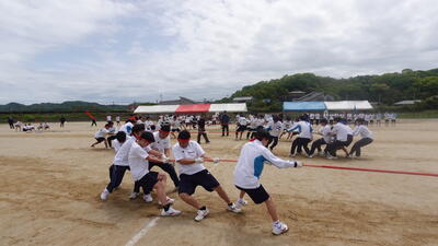綱引きでは、生徒チームvs大人チームでのエキシビジョンマッチも併せて行われました。この試合は大人チームが勝利!まだまだ若造には負けられません。参加していただいた皆様、ご参加いただきありがとうございました。