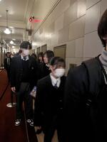 ▼プレゼンテーションの時間を前にして、緊張の面持ちの生徒たち。