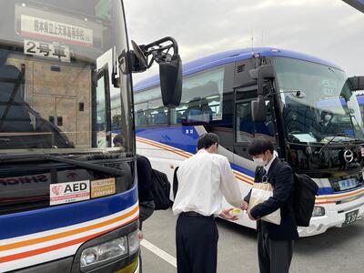 途中トイレ休憩等をはさみ17時頃上天草高校に到着予定です。