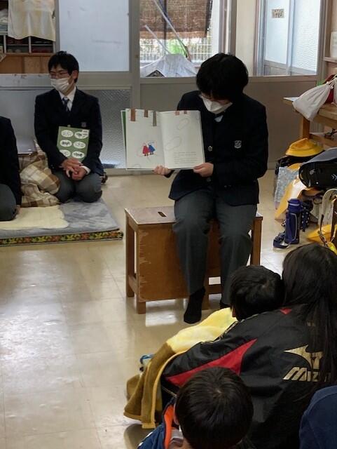 終業式を終えた午後、図書委員4名で、いつもお伺いする学童保育室へ、読み聞かせに行ってきました。