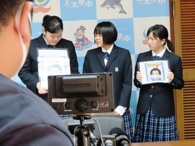 新生活様式ステッカー制作に取組んだメンバーが、天草ケーブルネットワークで放送される「上天草市からのお知らせ」出演し、事業をPRすることになりました。