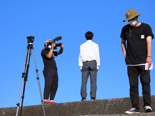 有名なSF作家の方に脚本を書いていただいた壮大なストーリーの予告動画。メインキャストとなる本校生徒も緊張しながら撮影に臨みました。