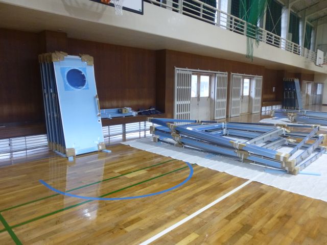 お昼前から1・2年生を中心に、体育館・武道場の設営を行いました。
