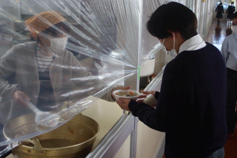 ゴールをした生徒は制服に着替え、お母さんたち手作りの温かい料理をいただきます。