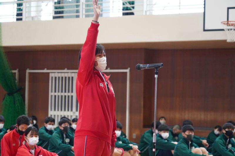 少ない人数ながら、大会ベスト16入りや選手それぞれ課題を持って一生懸命に練習に取り組んでいる姿を紹介してくれました。