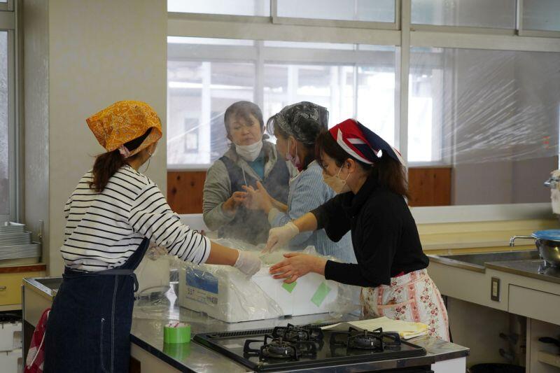 ゴールをした生徒は制服に着替え、お母さんたち手作りの温かい料理をいただきます。