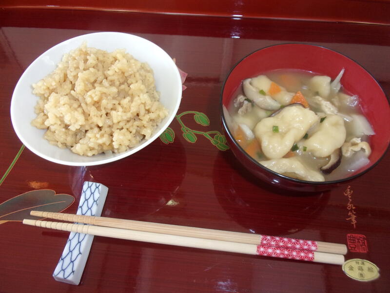 講師の坂口様、星野様に教わりながら、美味しい「茶飯」と「だご汁」が出来上がりました。