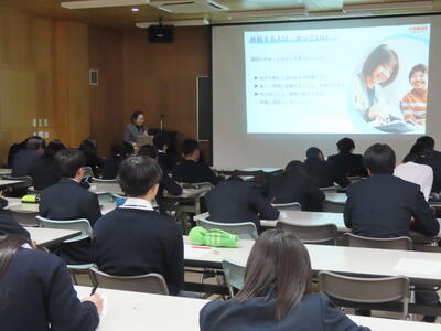 12月18日(木)、本校にて「キャリアデザイン講座」が開催されました。 この講座は、1・2年生を対象に、生徒それぞれの志望に合わせた「就職希望者」と「進学希望者」の2つに分かれ、外部から専門の講師をお招きして行われました。