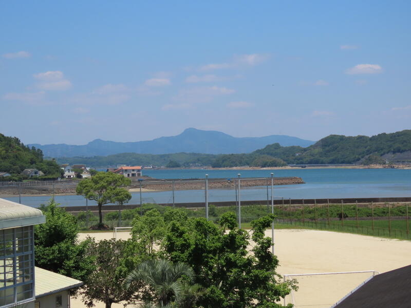 今日の教室棟からの景色はこちら!美しい海が見えています。さて教室では生徒たちが上天草プロジェクトに取り組んでいました。