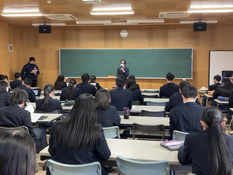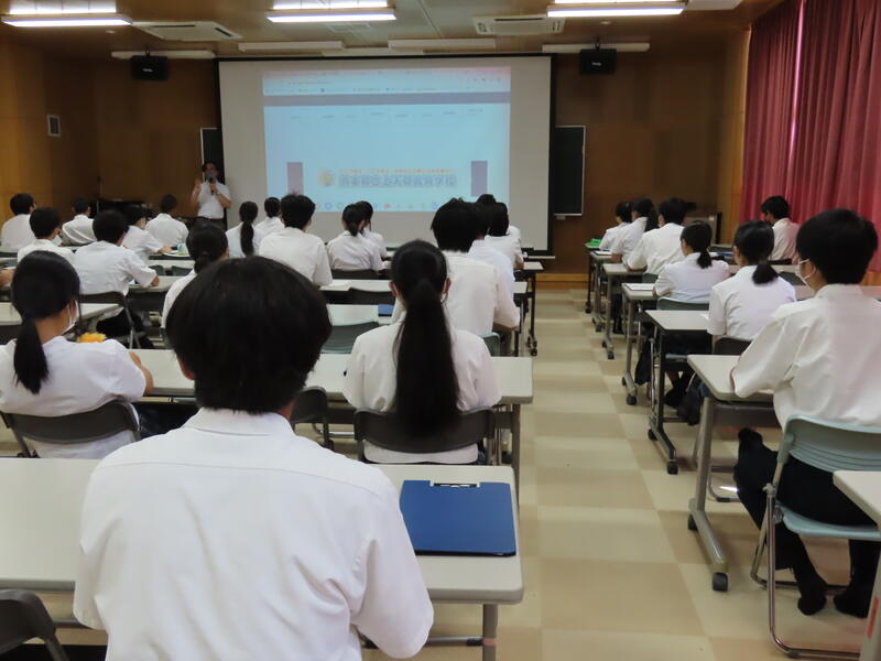 生徒指導部の富岡先生からは、旅行中の注意事項をはじめ、人の話をしっかり聞くことやルールを守って行動することが、事件に巻き込まれることを防いだり、自分たちの命を守ることにつながると、注意事項を守って行動することの大切さを教えていただきました。