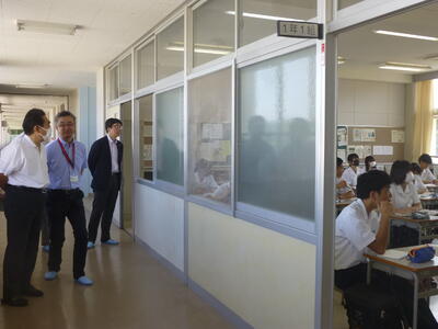 本日2時間目に、熊本県教育委員会の白石教育長が本校を訪問され授業を見学されました。