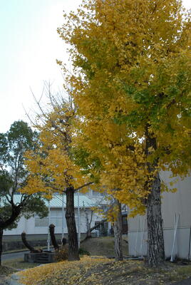 すでに、あずき色に染まっていた教室東横のアメリカハナミズキの葉や褐色のケヤキの葉は落葉してしまい、暖かい天草では今、イチョウの黄葉やイロハモミジの紅葉が鮮やかです。 (文責 田代周史)