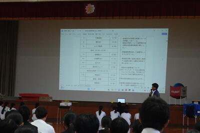 続いて、生徒会主催の「かみあまクイズ」が実施されました。上天草高校にまつわる問題が次々と出題されましたが、1年生の正答率の高さには司会の生徒も驚くほど。クイズを通じて緊張もほぐれ、会場は終始和やかな雰囲気に包まれました。