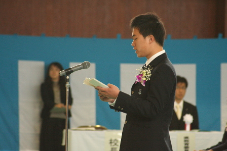 3月1日(木)に厳粛な雰囲気の中、第6期生の卒業式が挙行されました。前生徒会長の下森悟史くんが答辞を読み上げました。思いの込められた内容に、感動された方も多くいらっしゃると思います。75名の卒業生は、春からそれぞれの道へと旅立ちます。皆さんが希望に満ち溢れた明るい未来を歩むことを、職員一同、願っております。