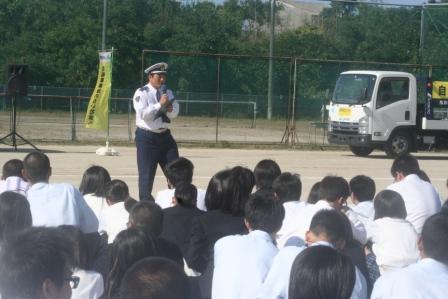 10月24日にスタントマンを使用した自転車交通安全教室が行われました。迫力のある事故の再現に、生徒たちは目が離せない様子でした。二名の生徒が前に出て、実際に安全運転を実践する場面もありました。