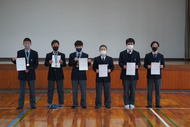 2年生 須﨑さんが+64㎏級に出場し、見事3位になり、銅メダルと賞状を手にしました。