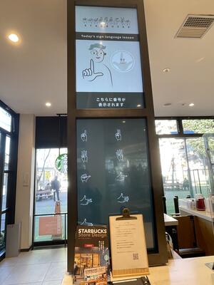 聞こえる人も聞こえない人も共に働き、多様な人々が自分らしく過ごし活躍できる居場所の実現を目指した、スターバックスのダイバーシティ&インクルージョンを象徴する店舗の一つだそうです。