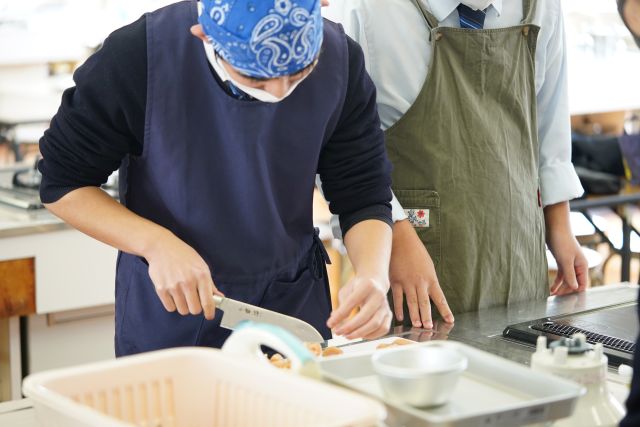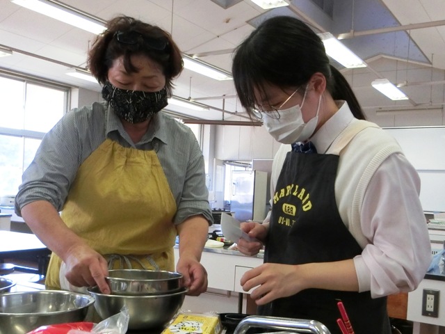 講師に「みずの果樹園」の水野 美奈子 様を招き、家庭科室で試作開始。