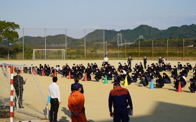 当日は大矢野中学校と松島中学校のサッカー部の皆さんと