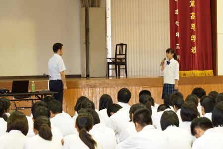 薬物によって、自らの心身を蝕むだけでなく、家族崩壊をも招くストーリーに、生徒一人一人が真剣になり、薬物の危険性を感じることができたようです。