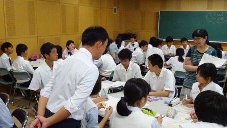 初めてグループ協議の手法を学んだ生徒たち。どのように勧めていけば良いか迷い、先生方にアドバイスをいただく場面もありました。