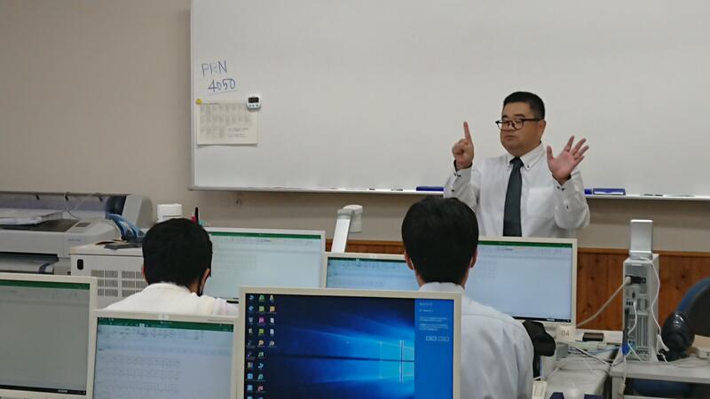 生徒の皆さんはコンピュータになった気分で勉強します。皆さん説明と画面をにらめっこ、真剣な表情でした。