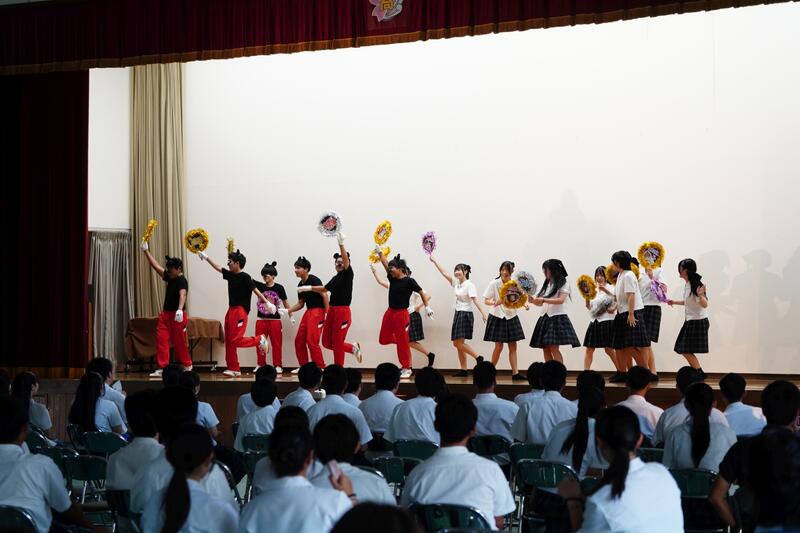 JPOPに合わせて、生徒たちがパフォーマンスを披露します。こちらは、3年生の二人!
