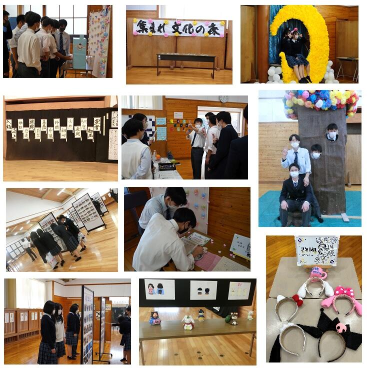 武道場では、各クラス(展示)・保健環境委員会・文化委員会・書道科・美術科・生徒会・美術部による盛りだくさんの作品展示やイベント型のゲームがありました。