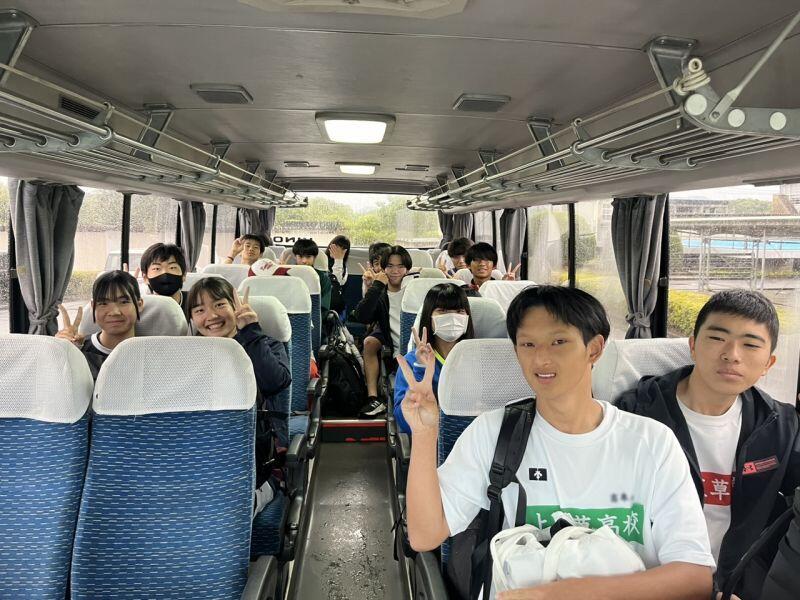 高校総体の開会式に参加するため、早朝より生徒たちは出発しました。
