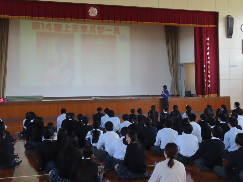 この日は、上天草バザールの目的や取組内容、そして行事に臨む際の心構えについて説明があり、生徒たちは真剣な表情で耳を傾けました。