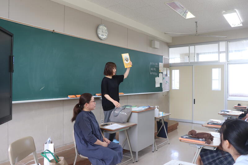 生徒たちも読んだことのある懐かしい絵本、最新の絵本、仕掛け絵本等・・・実際に手に取って、読み合いをしました