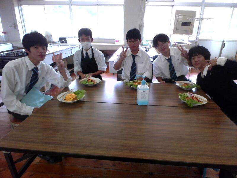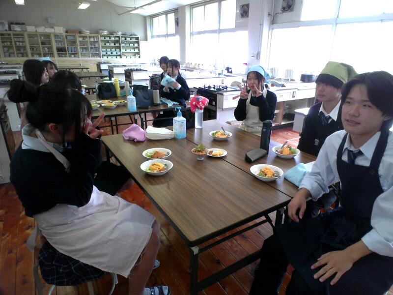 生徒たちは協力しながら、手際よく調理を進めました特にチキンピラフの炊き加減や、オムレツの「ふわふわ感」を出すための火加減調整に、真剣に取り組みました