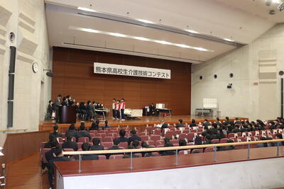 3/12(火)熊本学園大学にて、高校生介護技術コンテストに出場しました。生徒一人ひとりが試行錯誤を重ね当日を迎えました。他校の福祉を学ぶ高校生の様々な介護技術からも学び多き1日となりました。本校は福祉科1,2年生全員で出席し、「優良賞」をいただきました。ご支援いただいた皆さまありがとうございました。