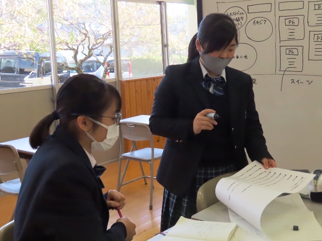 大矢野中学校の皆さんは、クラス毎にビジネスプランを作成されており、各クラスで会計部や広報部などの部署に分かれて研究を進めていらっしゃいました。