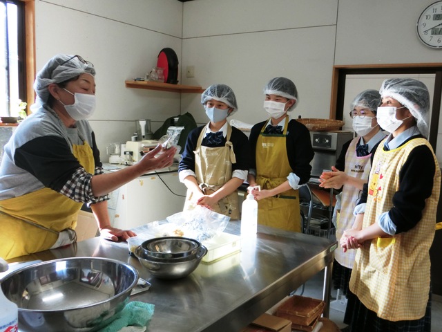 講師に「みずの果樹園」の水野 美奈子 様を招き、家庭科室で試作開始。