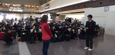 羽田空港に着いて、ここでお別れになる看護師の佐々井さんに、生徒を代表して2年4組東君が挨拶をしました。「修学旅行を安心して行えたのは佐々井さんのおかげです。大きなけがや病気がなく楽しい修学旅行がきました。家に帰り着くまでが旅行なので、お別れしたあとも、最後までしっかり体調管理に気をつけたいです」