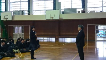 大矢野中学校の皆さん。上天草高校での学習を体験してみてどうでしたか?