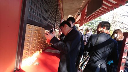 おみくじの後は、旅が無事に実りあるものに終わるよう祈願していました。