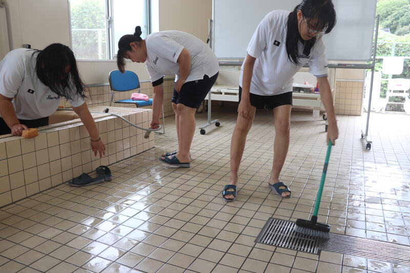 みんなで協力して環境を整え、入浴実習室を清潔に後片付けまで頑張りました。
