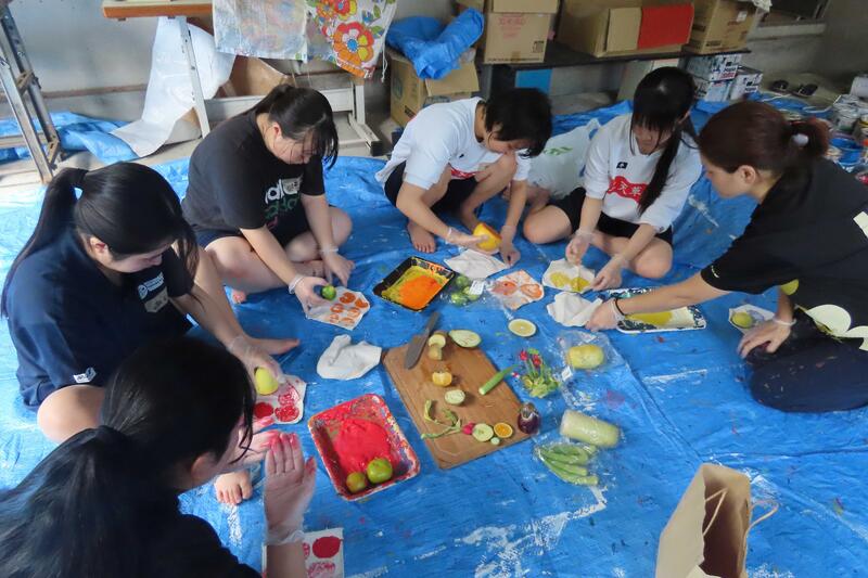今回は、上天草市で収穫された野菜や果物、各自持ち寄ったものを用いてスタンプを体験しました。
