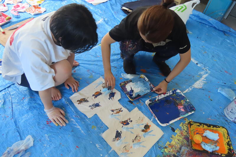 色やペンキの量、押し方で全く違うものに見える面白さに、生徒たちも興味津々です。