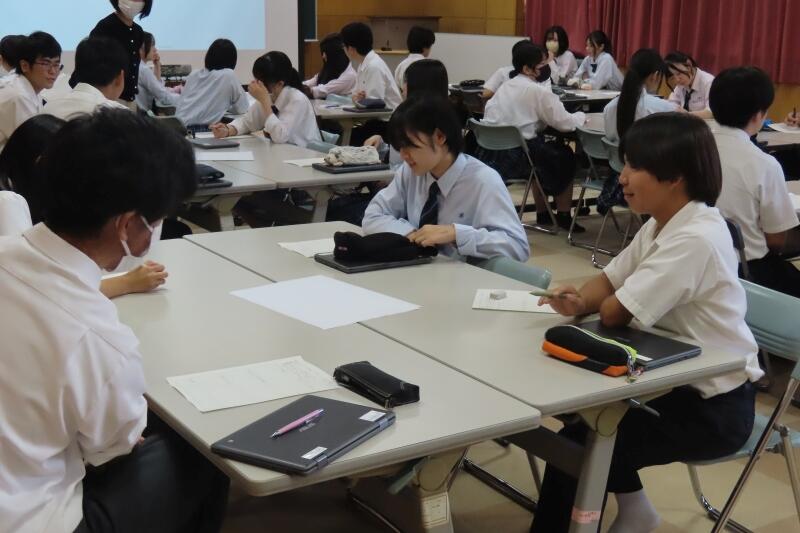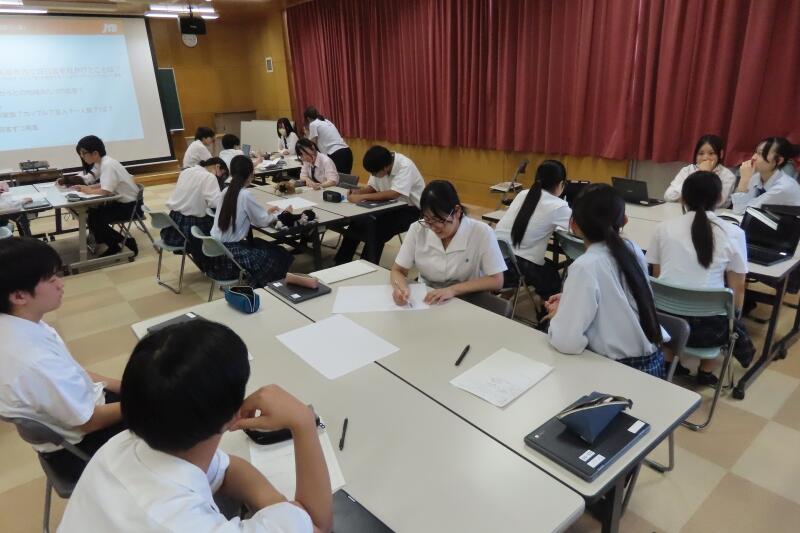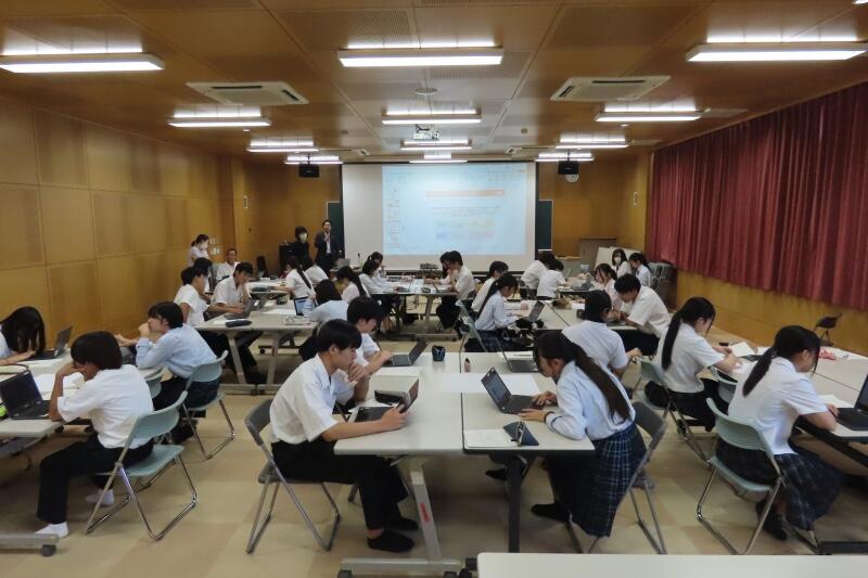 倫理の授業では、それぞれでテーマを設定し、調べて考えて共有して、学びを深めていく取り組みをしているとのこと。